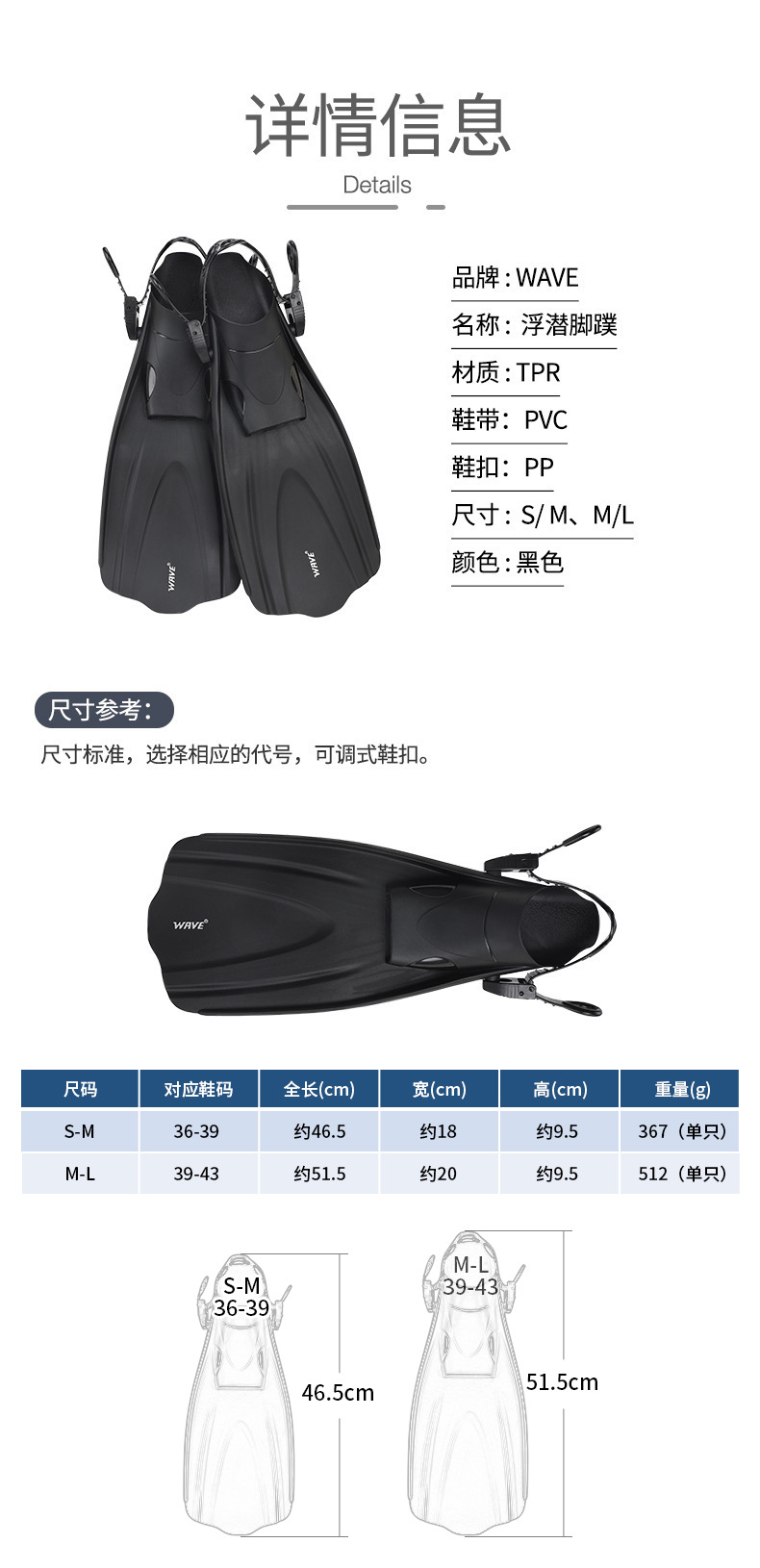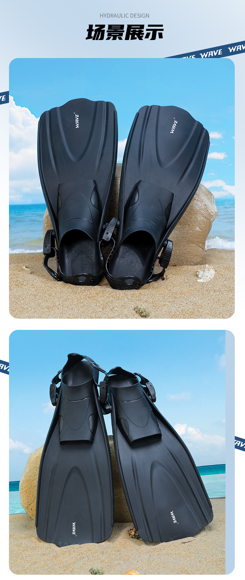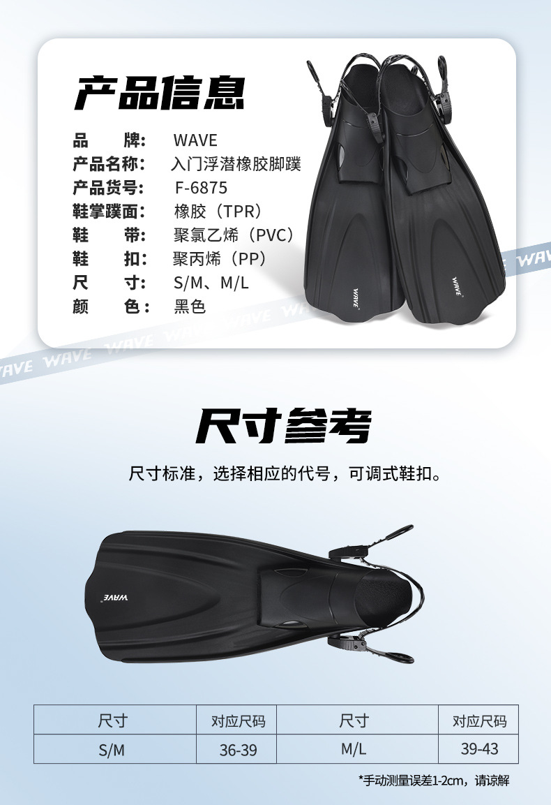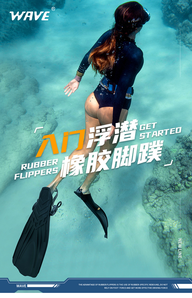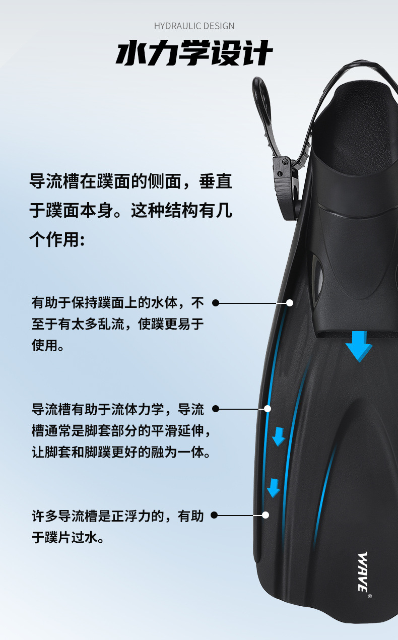 wave爆款脚蹼专业浮潜装备游泳蛙鞋成人可调节脚蹼潜水脚蹼