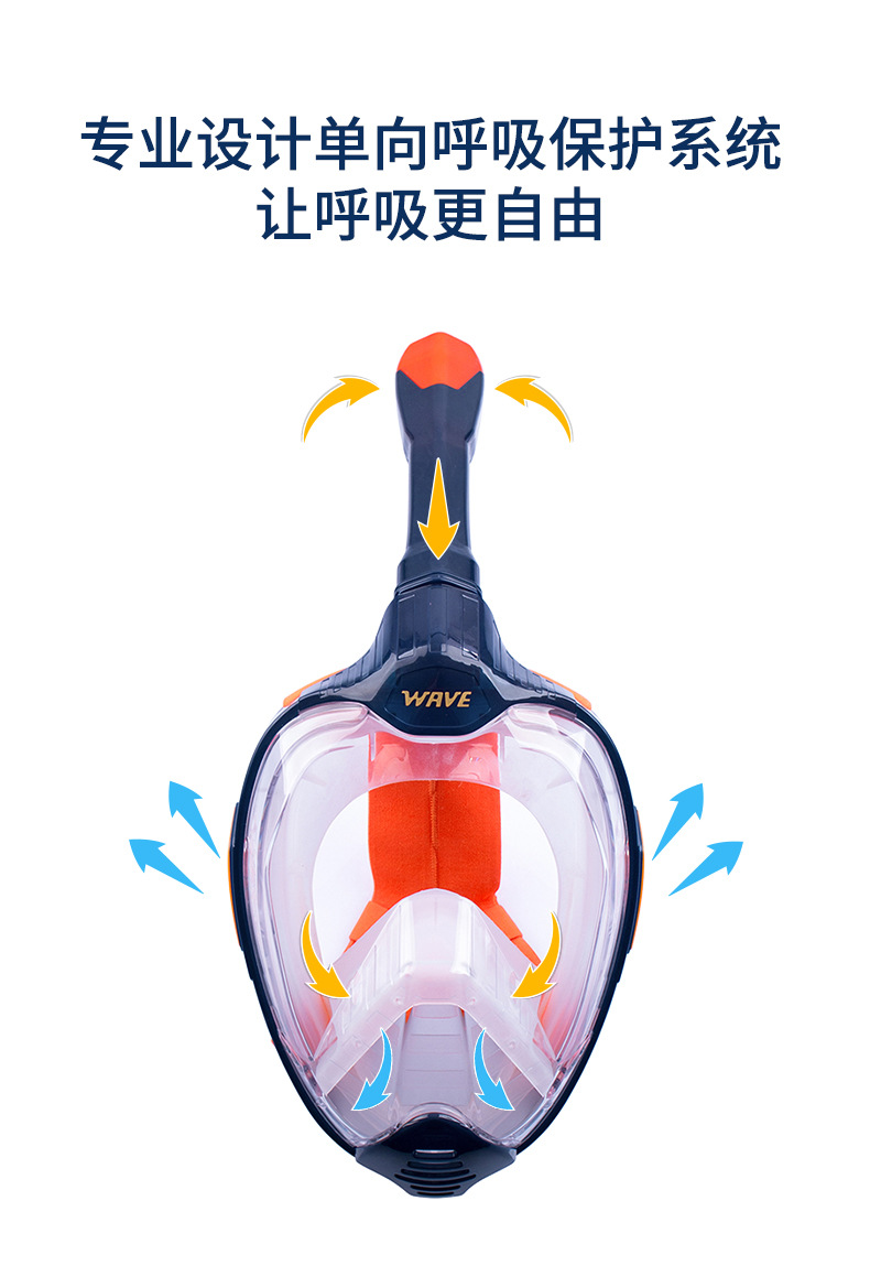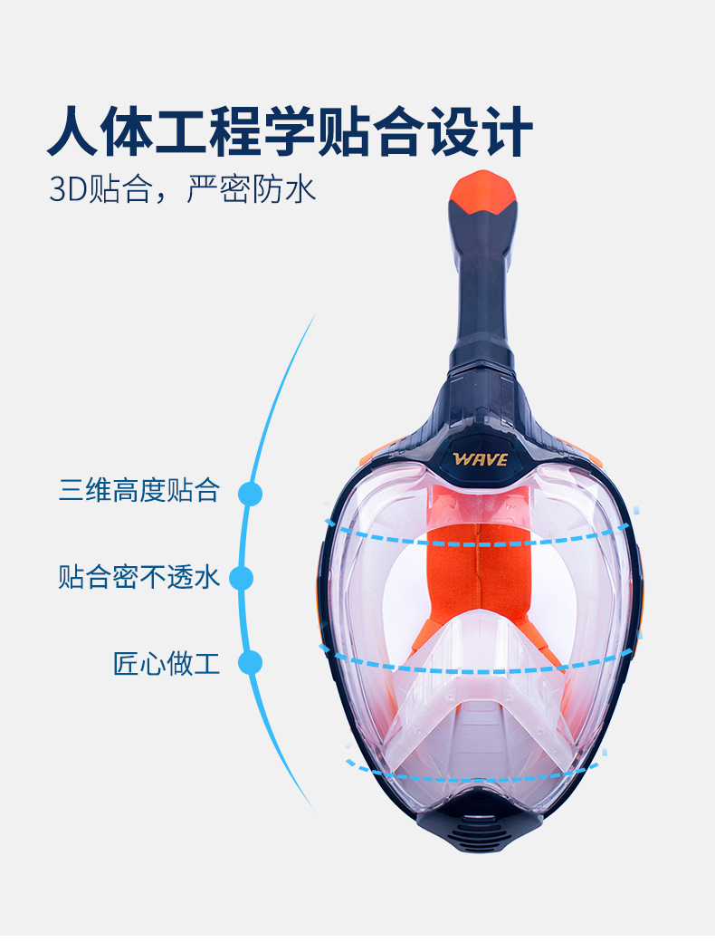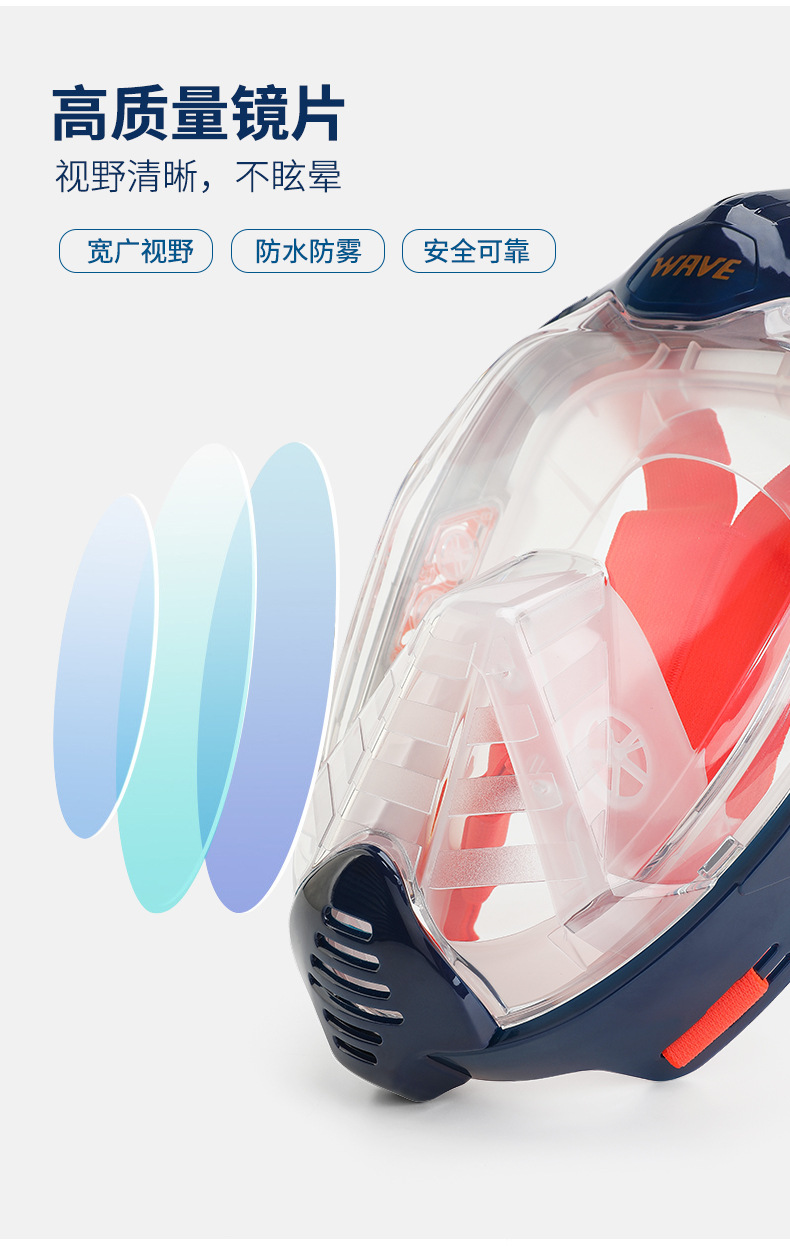 wave专业浮潜自由潜面镜高清全干式呼吸游泳大框防雾浮潜面罩