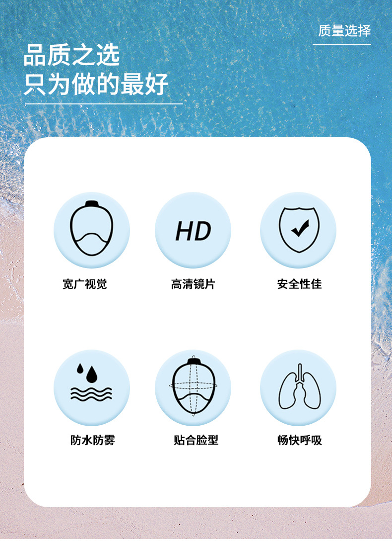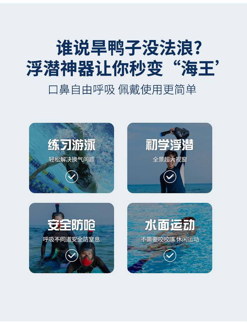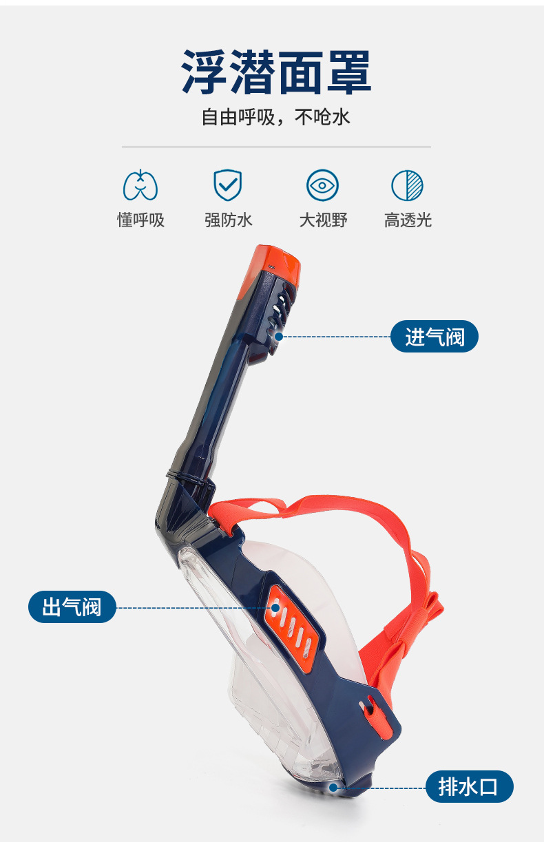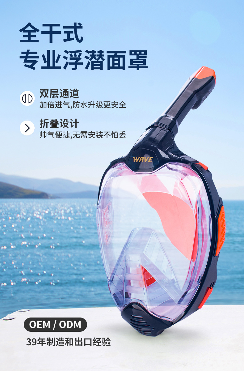 wave专业浮潜自由潜面镜高清全干式呼吸游泳大框防雾浮潜面罩