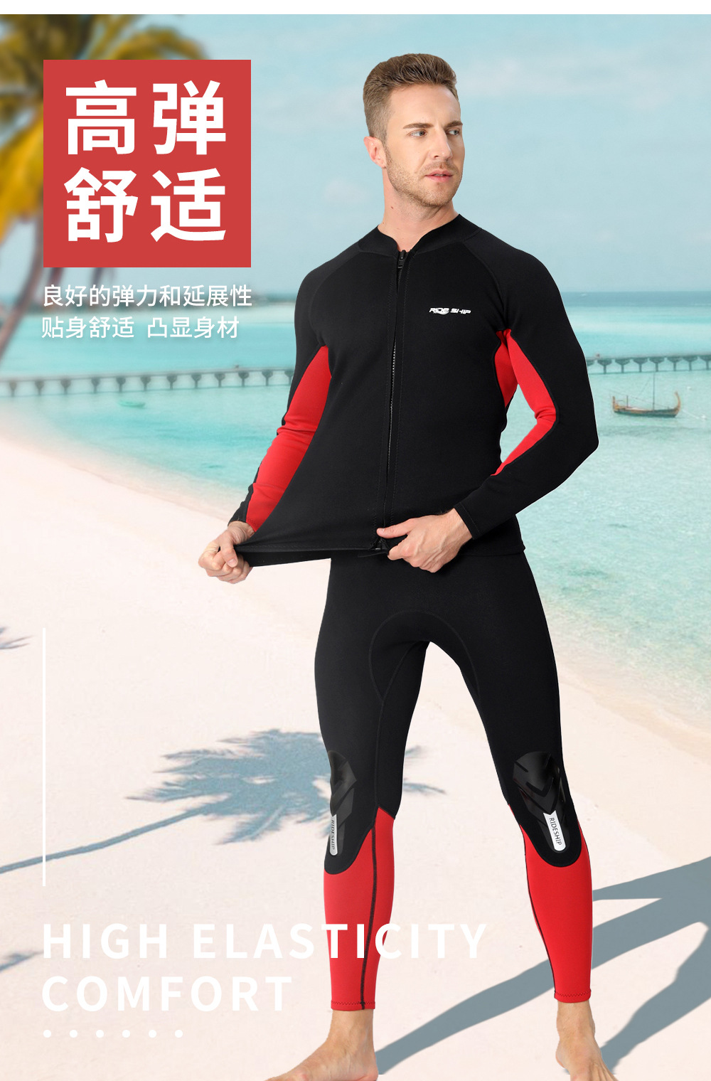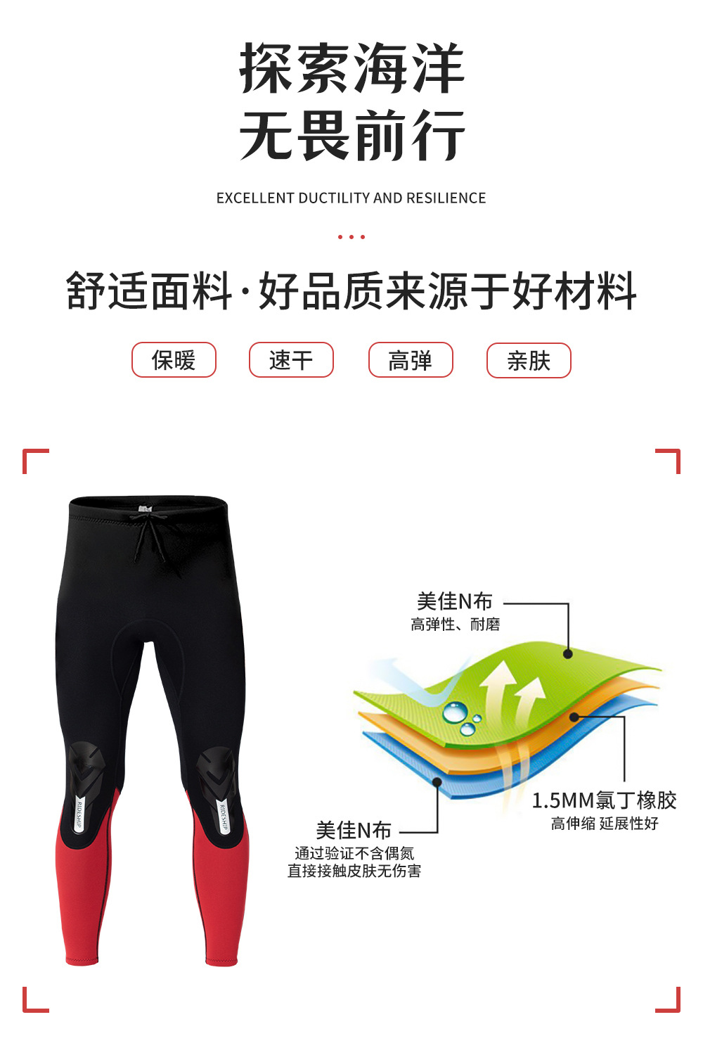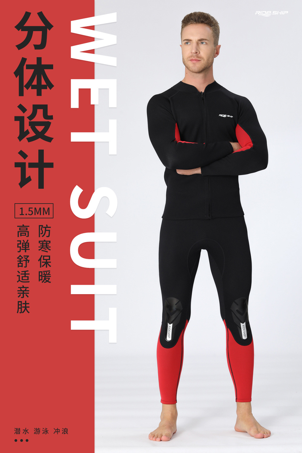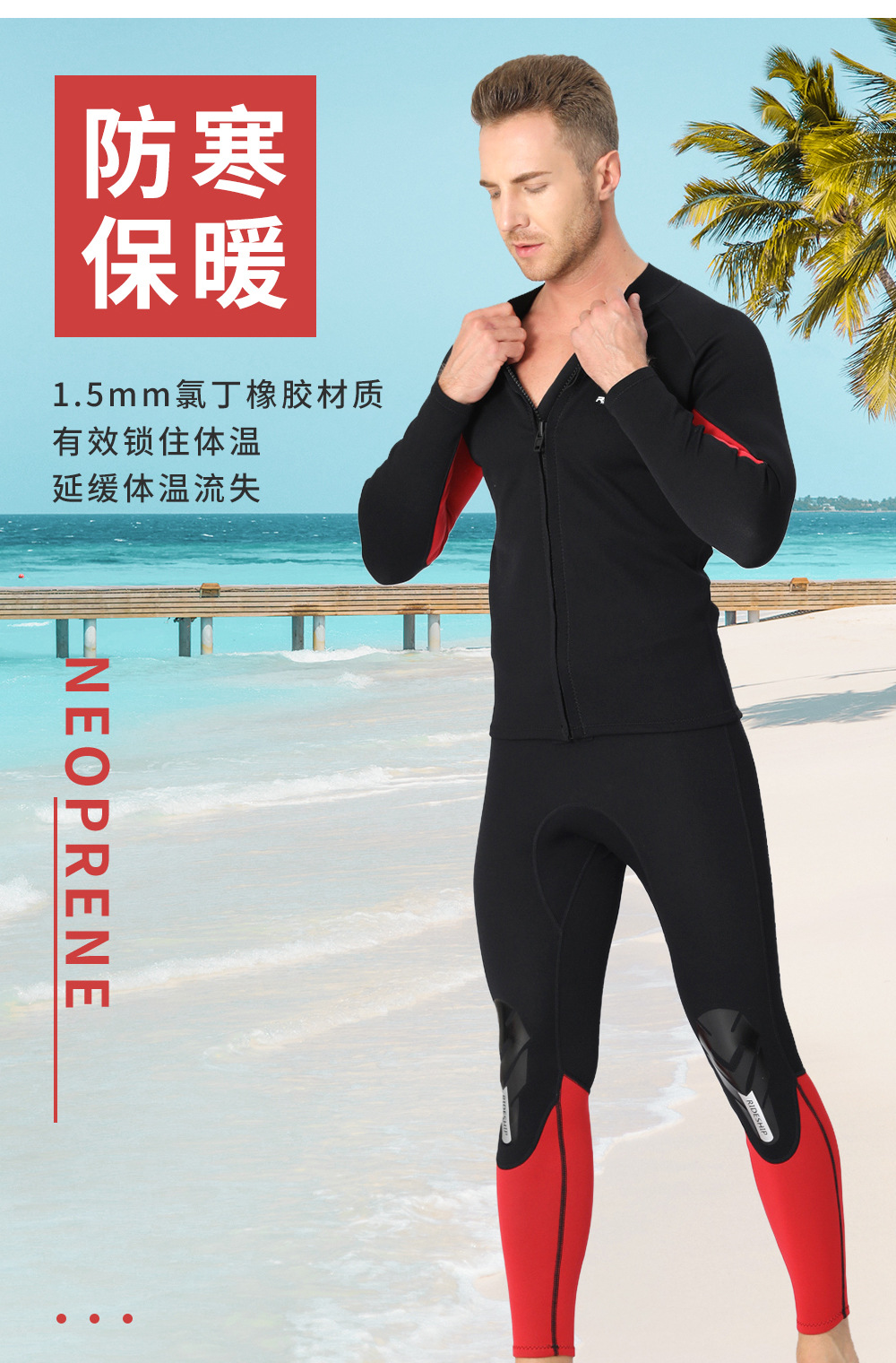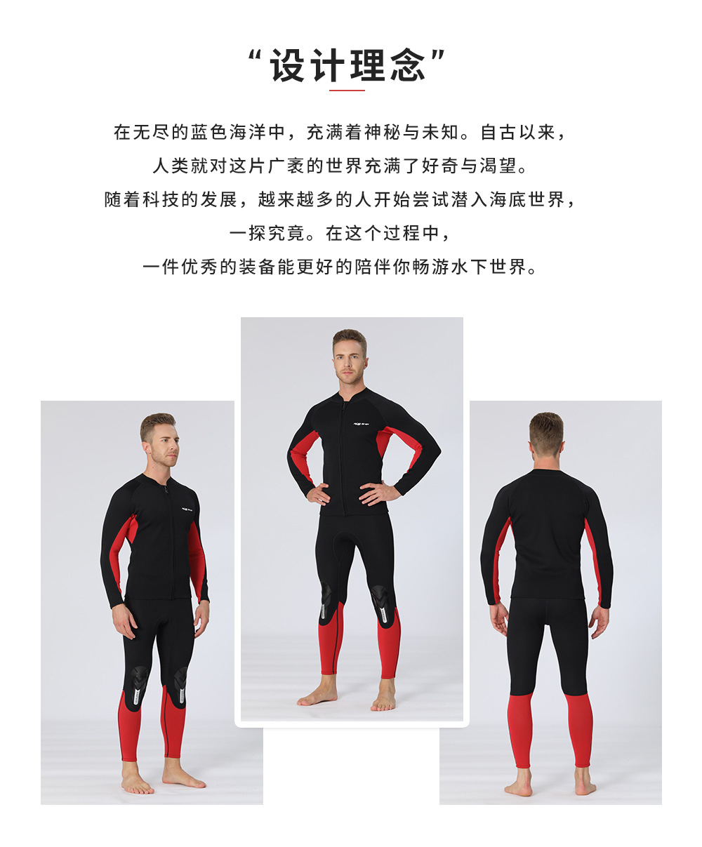 自由潜水服分体湿衣1.5 mm长袖上衣游泳深潜潜水裤子男浮潜衣冲浪