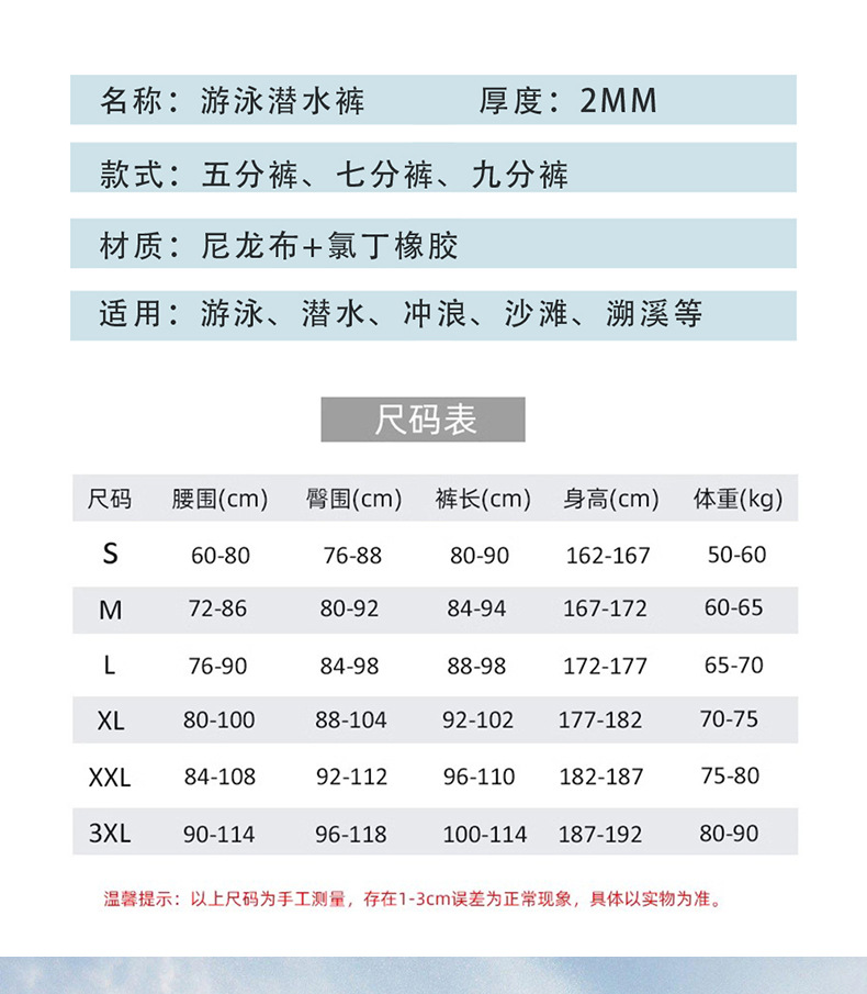 2MM加厚保暖潜水长裤男 女分体浮潜裤帆船冲浪冬泳裤潜水裤防晒