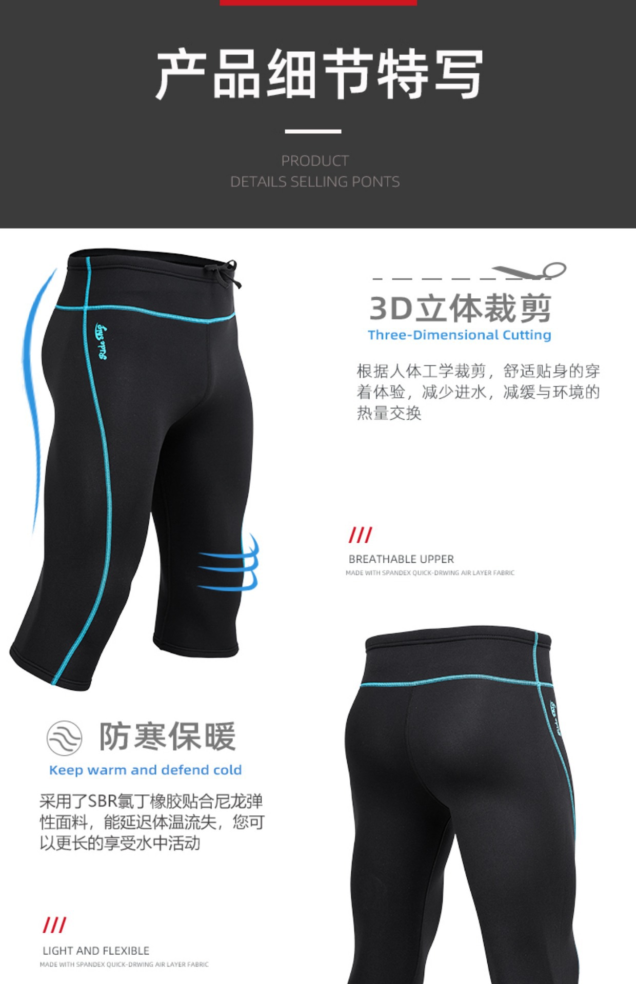 新款2mm加厚分体潜水裤 男女冲浪衣防寒衣保暖加绳游泳服衣浮潜衣