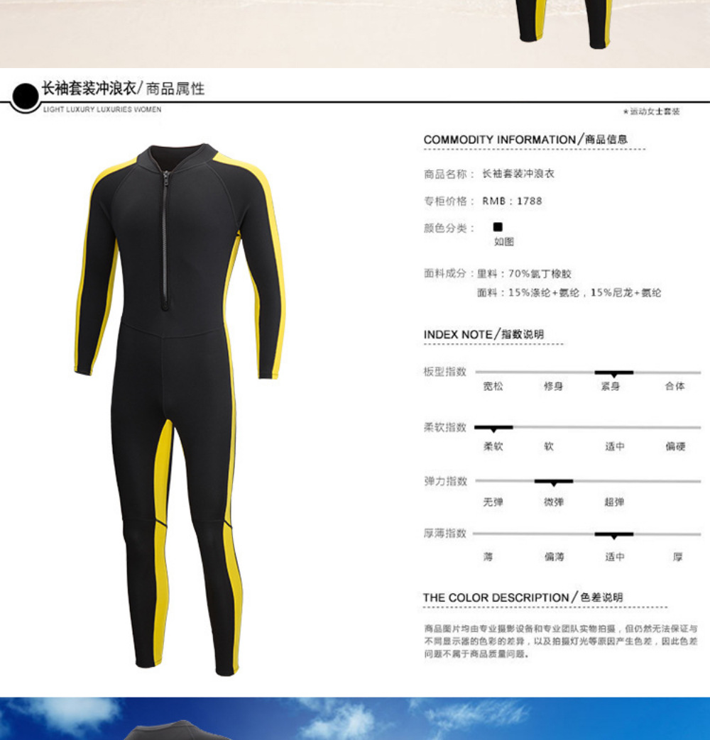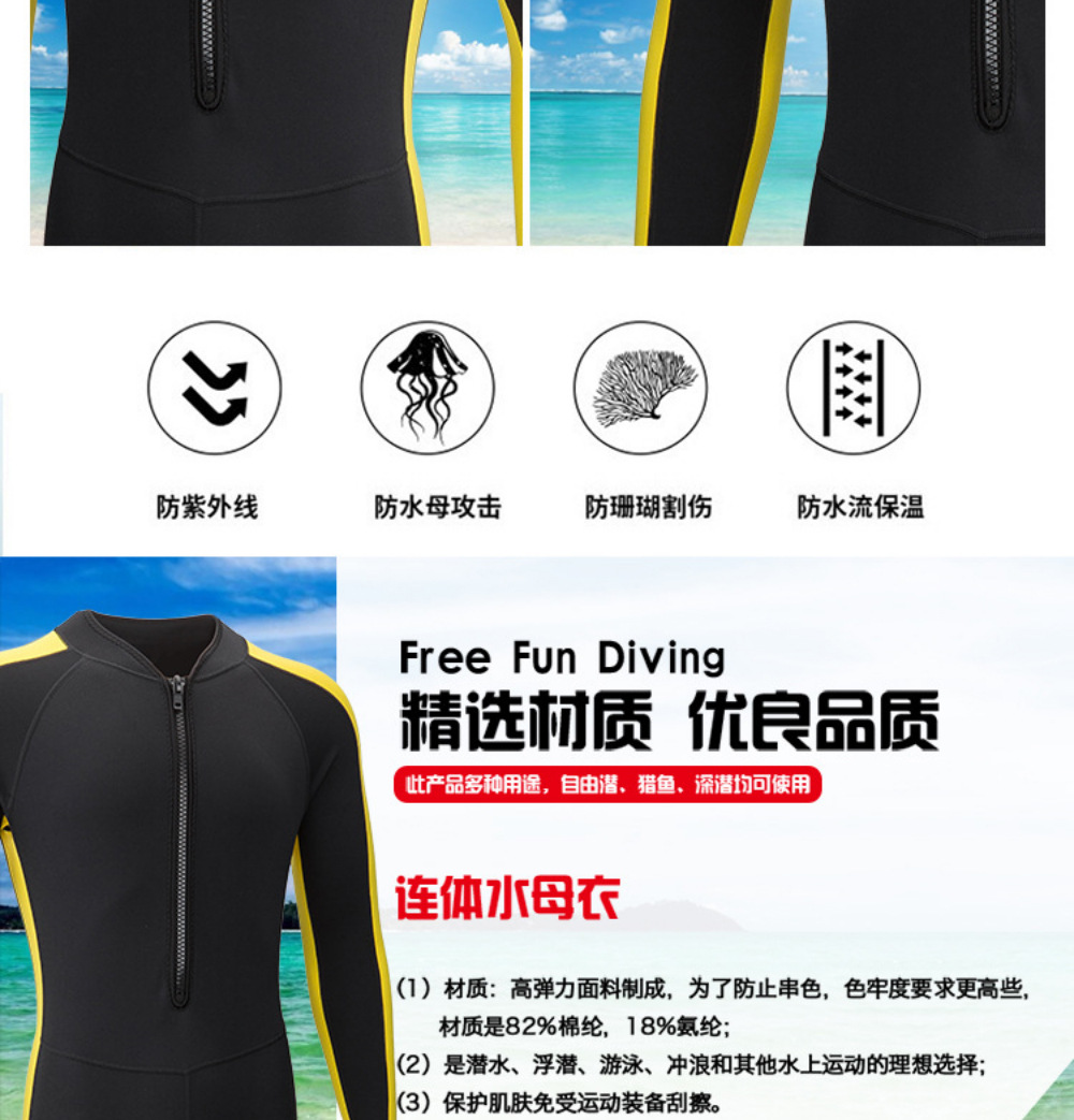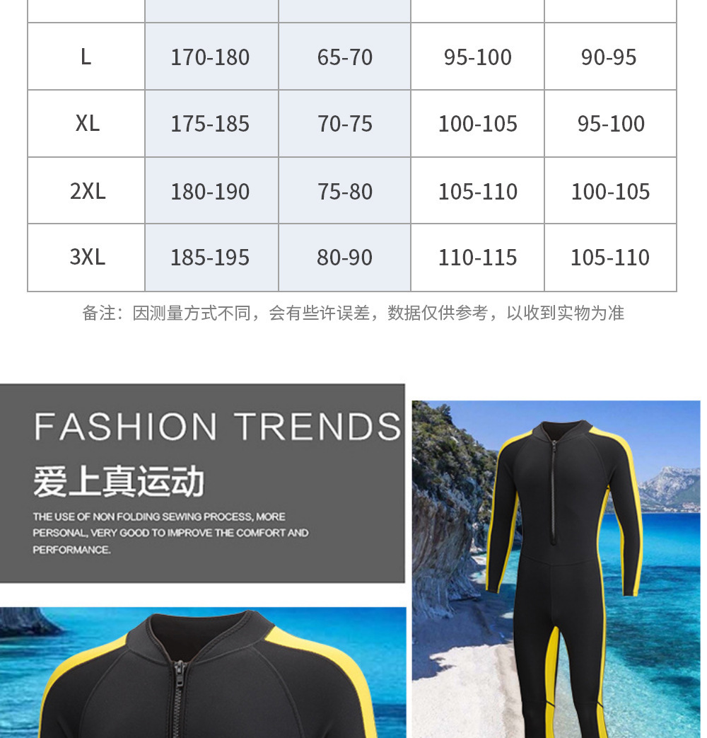 2MM潜水服连体成人潜水服李小龙款保暖防寒