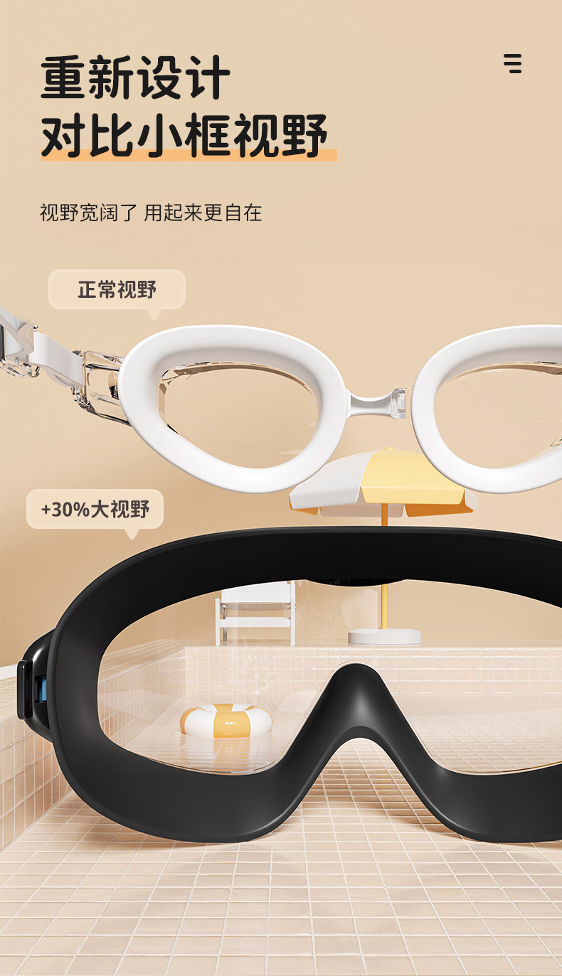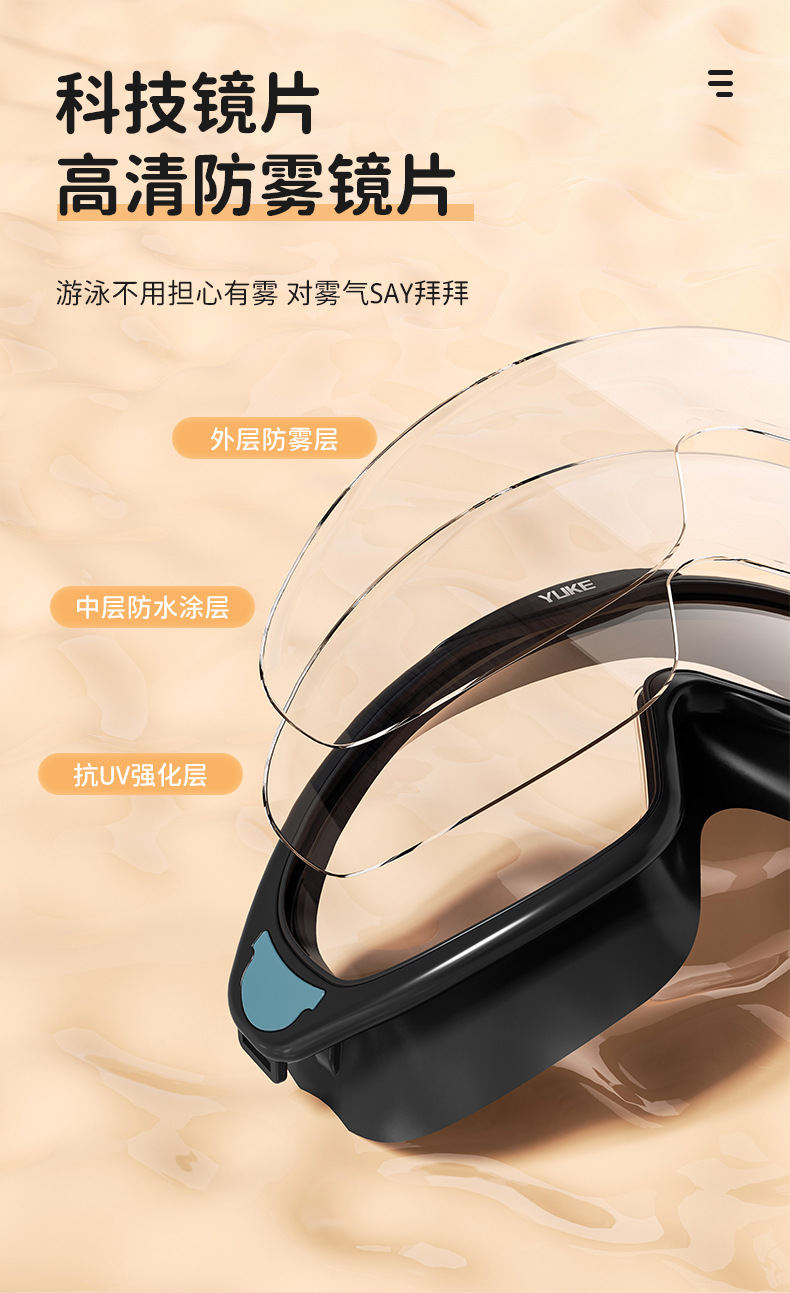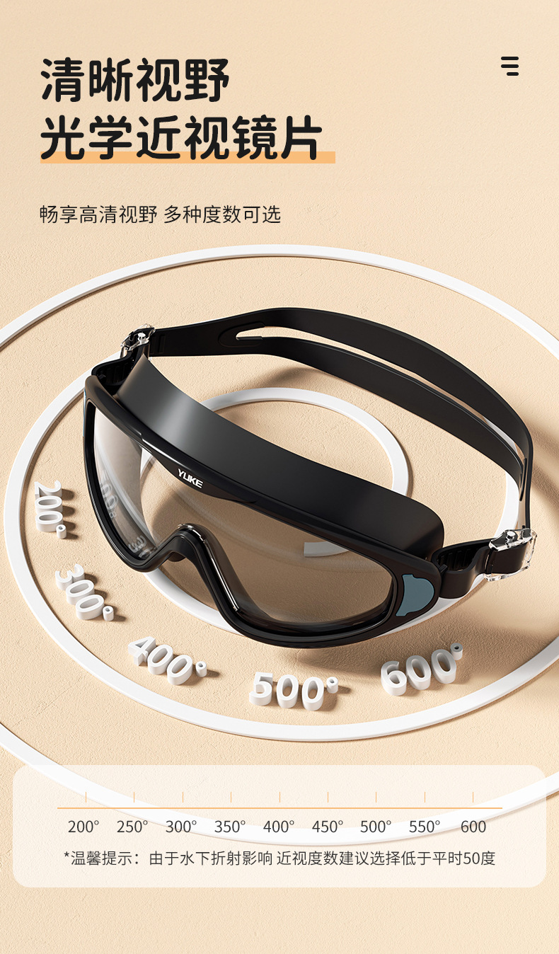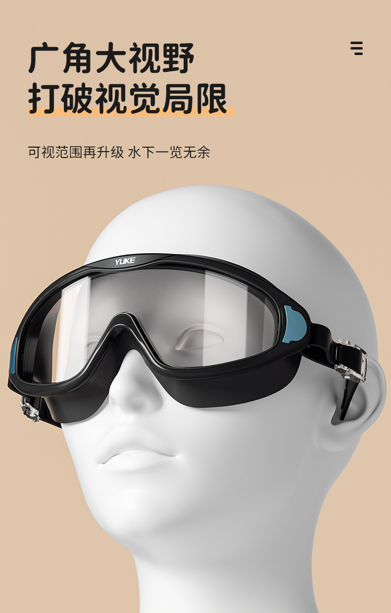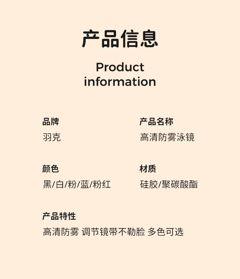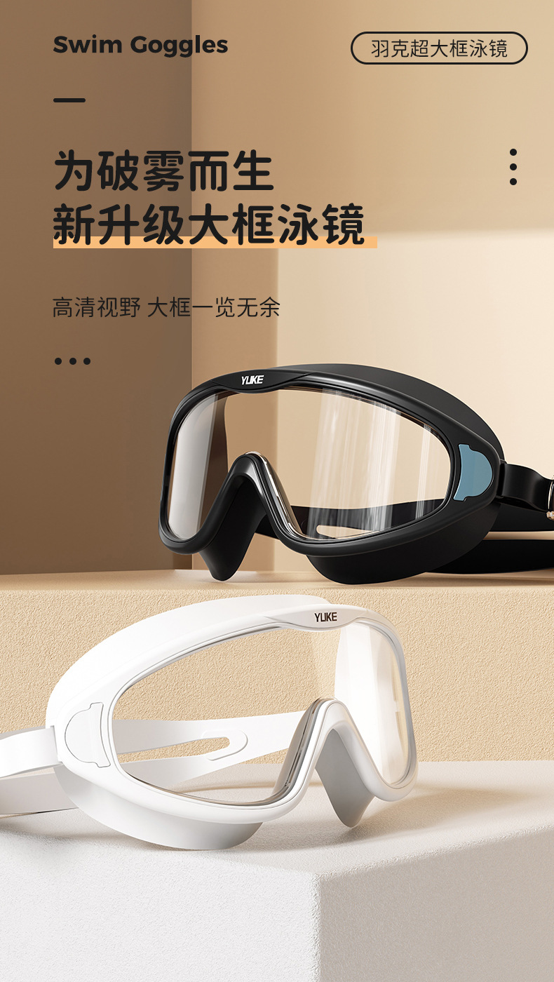 羽克泳镜 防水防雾款高清专业男女士大框成人款 游泳眼镜泳帽批发