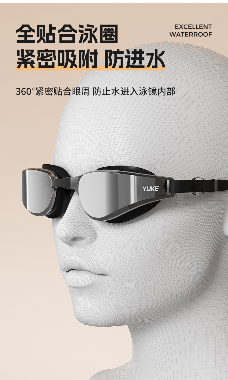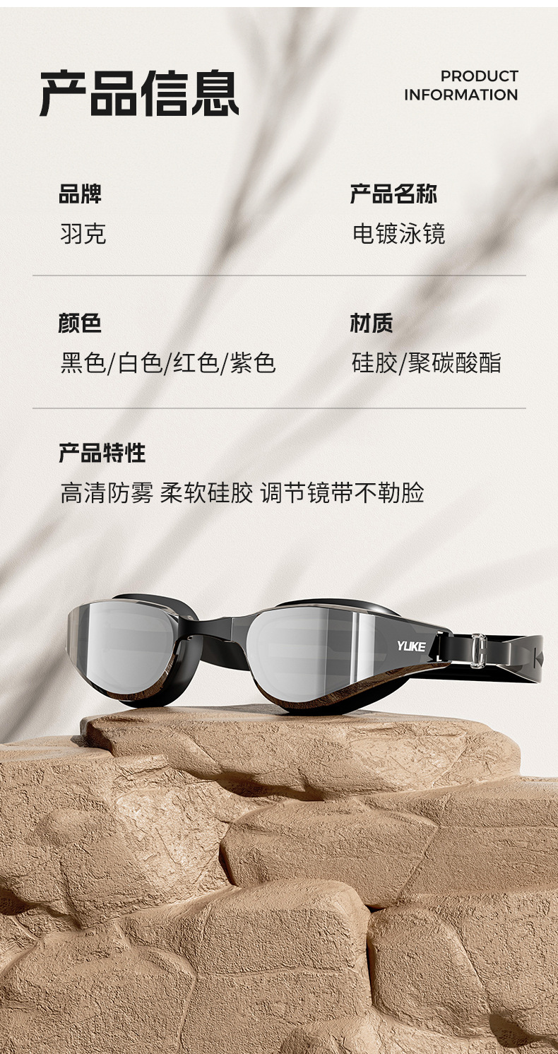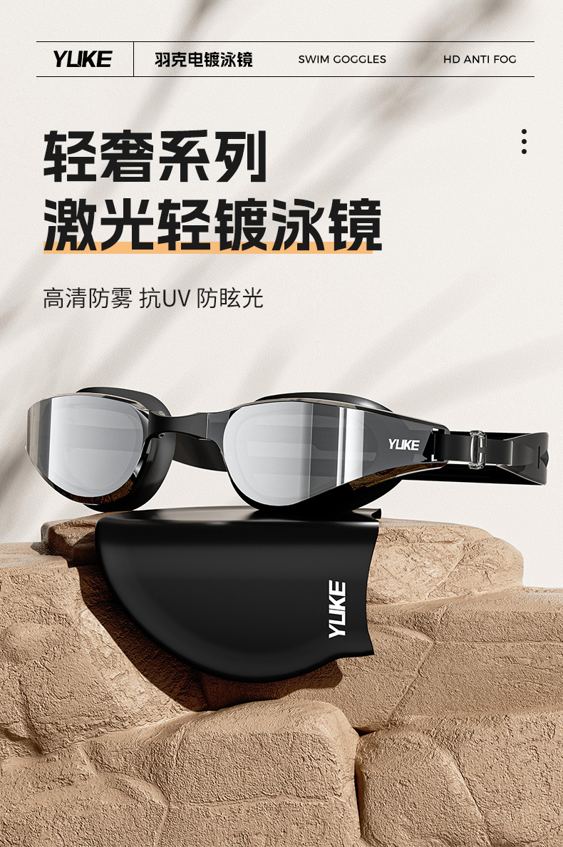 羽克新款泳镜男士女士电镀防雾游泳眼镜带耳塞平光泳镜批发